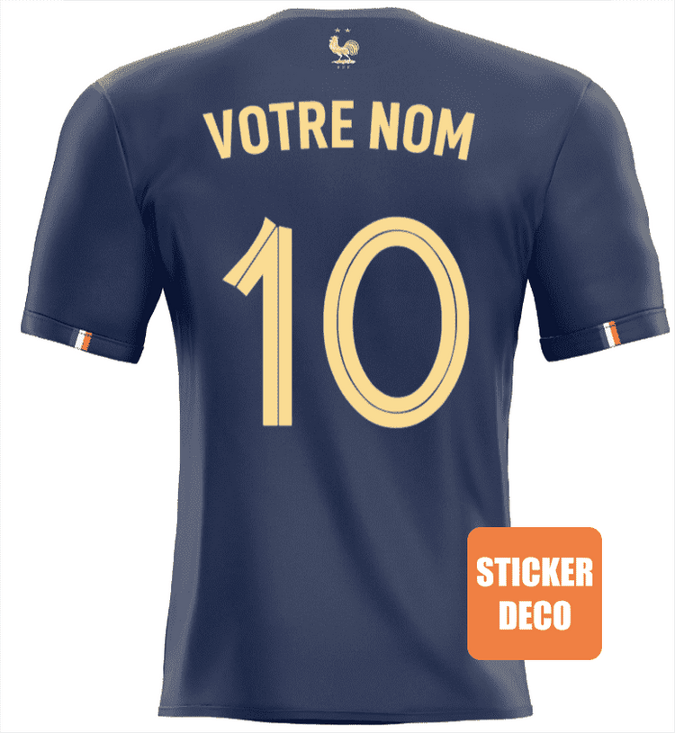 ¿Fanático de la camiseta de Francia? Consigue nuestro regalo original y personalizado con una pegatina de camiseta de fútbol, ​​decoración EQUIPE DE FRANCE. ¡La decoración es única e incluye la STICKER de la camiseta de la selección de Francia y el nombre y el número que elijas!
