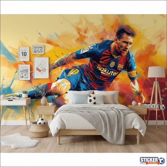 Transformez la chambre de votre fan de foot en une célébration du talent avec notre Papier Peint Lionel Messi FC Barcelona. Chaque rouleau est une ode à la passion et à l’art du football, avec des images vibrantes de Messi, la légende du Barça. Facile à poser, ce papier peint est idéal pour inspirer les rêves de gloire sur le terrain de vos enfants et pour ajouter une touche sportive à tout espace. Marquez un but déco et faites vivre à votre intérieur l'émotion du Camp Nou!