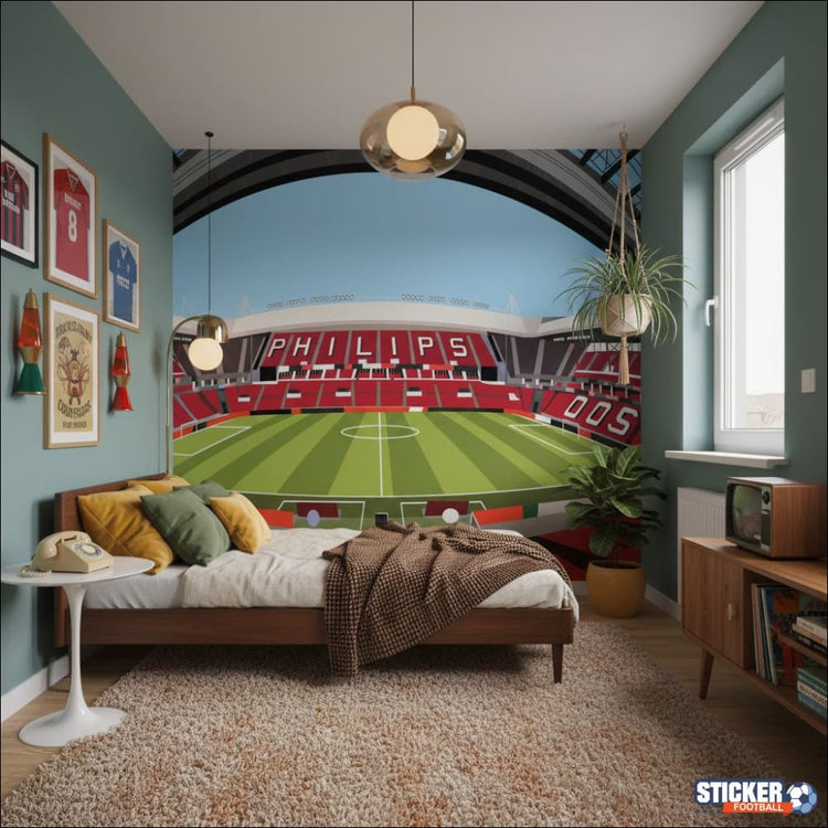Transformez n'importe quelle pièce en un hommage vibrant au football avec cette impression murale saisissante, directement inspirée de l'enceinte mythique du PSV Eindhoven. Ce design capture l'essence même de l'ambiance des jours de match, offrant une fenêtre grandiose sur l'un des stades les plus emblématiques d'Europe. Idéal pour les fans inconditionnels, les collectionneurs ou simplement ceux qui apprécient l'architecture sportive, ce revêtement mural est conçu pour faire battre les cœurs.